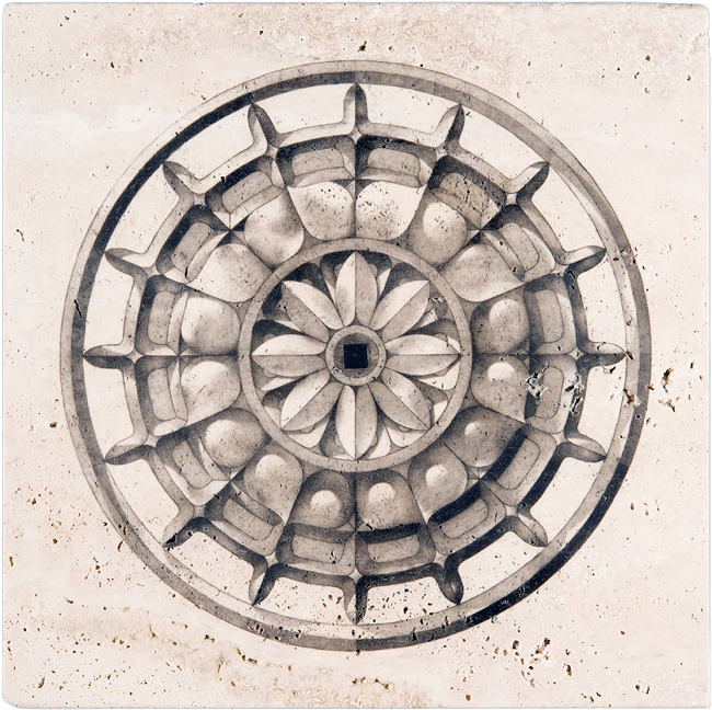 Dhammachakka III 2015 graphite on marble, 12 x 12 inches. Wat Buddharangsri collection.