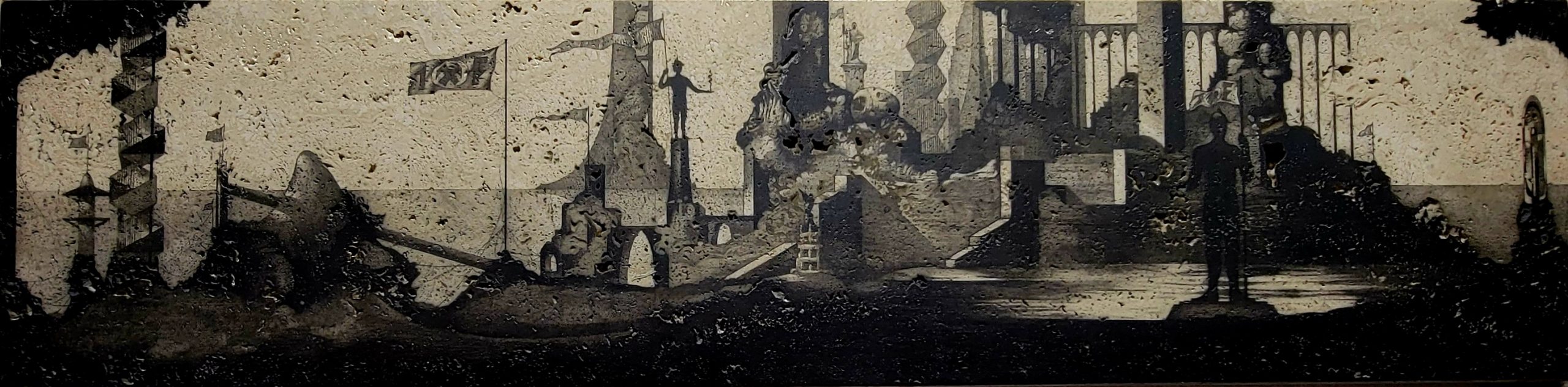 Golden Citadel 2025, graphite on marble, 6 x 24 inches. Glexis Novoa Studio, Miami.