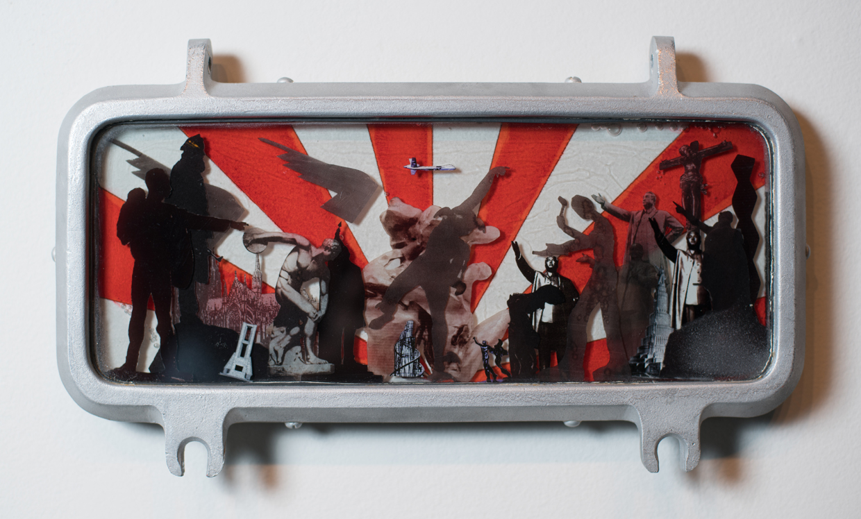 Sunrise 2016 Tinta japonesa Sumi & collage sobre papel, montado en cristal (portillo de barco); 7 3/4 x 13 x 1 pulgadas. Private collection.